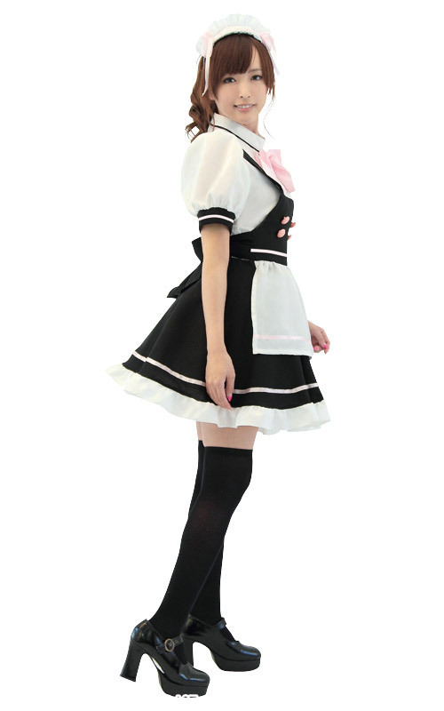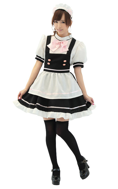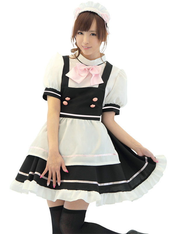 萌え系スタイルに彼も萌え萌えに…!?黒×白のシンプルなメイドワンピースにピンクリボンとピンクボタンを施し、キュートさをプラスした超ラブリーなメイドコスチューム。ワンピース・エプロン・カチューシャの3点セットでとってもお得なアイテムです。※こちらの商品は受注発注商品の為、ご注文から発送までに3、4営業日掛かる場合が御座います。