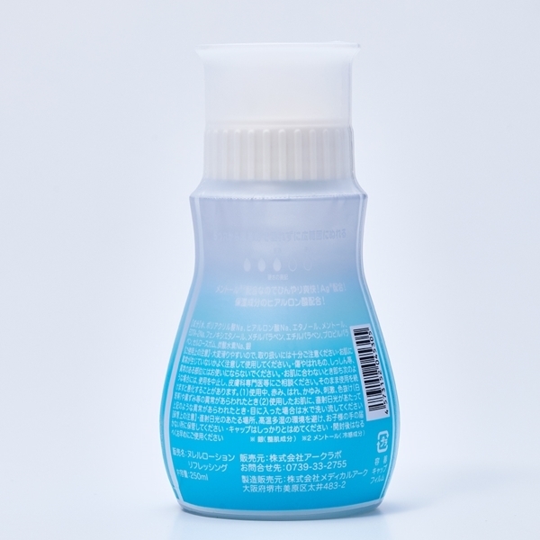 メントール配合でひんやり爽快な使い心地が特徴のクールローションです♪整肌成分のAgと保湿成分のヒアルロン酸も配合しており、お肌を守りながら爽快感を提供します!火照ったカラダをスーッと冷やしてくれるので、暑いシーズンにも最適♪このローションは、5つの穴から噴出するので広範囲に塗りやすく、使いやすさ抜群です!スタンダードな粘度タイプで滑りが良く、持続性もバッチリ♪どんなシチュエーションでも使いやすい設計になっています!250ml容量で持ち運びにも便利なサイズボトルです♪お肌をしっかり守りながら、爽快な使用感を楽しめるのがポイントです!どんなシーンでも使える万能なクールローション♪夏の暑さを乗り切るためのアイテムとして、ぜひ手に入れてください!ひんやり感と保湿効果で、爽快な毎日をサポートします♪化粧品販売届出済。