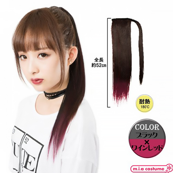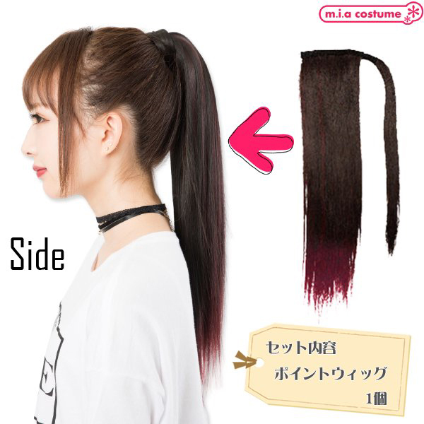 簡単にイメチェンできる着脱式の耐熱ポイントウィッグです。二つ使えばツインテールにもアレンジ可能!地毛に馴染みやすいサラサラの毛質だから違和感なくお使いいただけます♪発色の良いブラック×ワインレッドのカラーリングはライブなどのイベントにもおススメ。※商品は一つ入りです