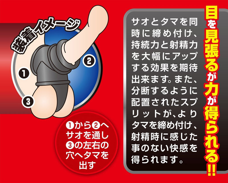 性生活のお悩みはこれで解決!男性に大人気の「力丸」シリーズに新たに誕生した最強ペニスリング(スモーク)。●伸縮自在で強力フィット●締め付け過ぎない尿道ポケット付き●サオ&玉袋を同時に締め付け●分断するように配置されたスプリットが玉袋をより一層締め付け。個人差はあるものの、持続力と射精力を大幅に高める効果が期待できる男性補助グッズです。