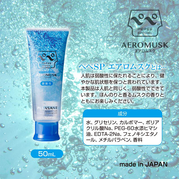 信頼のブランド「ペペ」から香りが付いたローション「ペペスペシャル エアロムスク (50ml)」が登場!細かな気泡が入っていて軽いテクスチャーと滑りを与えてくれる高品質なローションです♪弱酸性だから敏感肌の女性でも使いやすく、低刺激なので長時間使っても大丈夫。こちらの50mlはチューブボトルなのでキャップはワンタッチ!肌触りが気持ちよく適量が取り出しやすいのでシーンを選ばず大活躍♪官能的なムスクの微香が香るので、エッチな気分を盛り上げたいときにもおすすめです!
