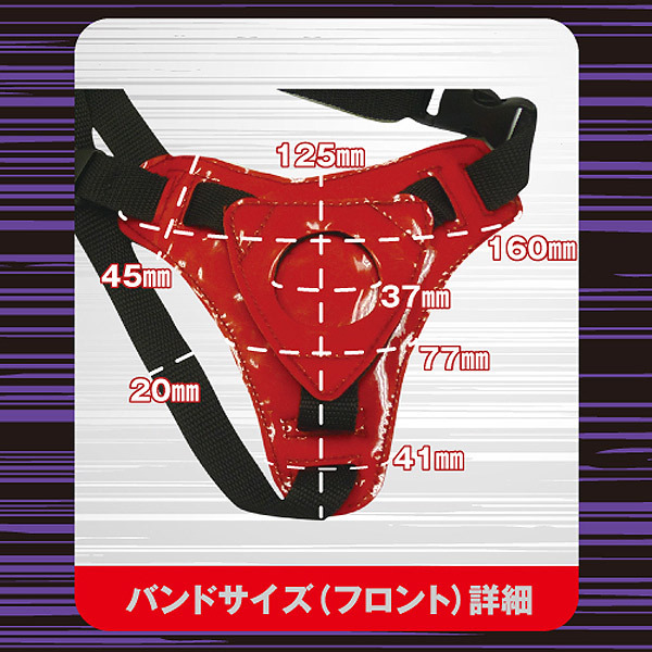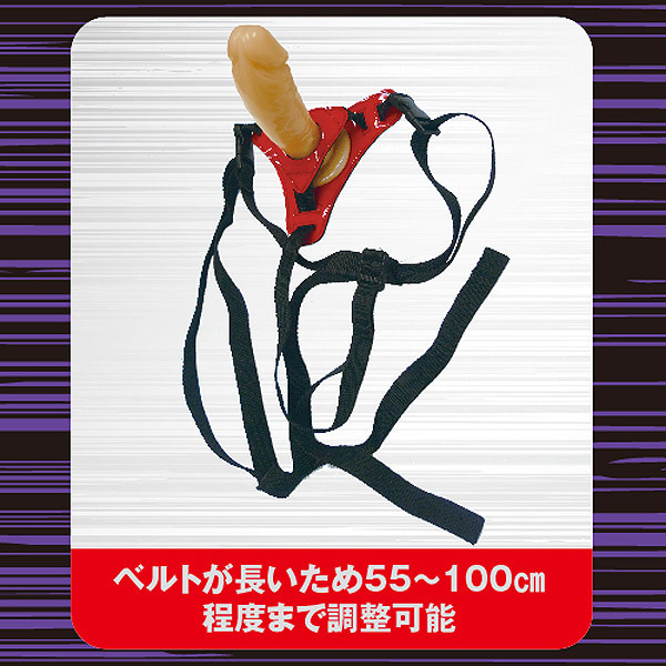 簡単にどなたでも安心して楽しめるペニバンセットです。長時間の使用でも無理なく楽しめるように負担のかからない作りとなっております♪腰のベルトは55〜100cmの範囲内でサイズ調節が可能。簡単に固定でき、しっかりとフィットします♪安定感抜群で耐久性も高く、ベルト側のディルド装着穴の直径は38mmですので、お手持ちのディルドでサイズが近いものをお持ちでしたら装着も可能です。付属のディルドの底部はストッパーとなっており、吸盤ではありませんが、プルンプルンとした肉感的な感触が心地よく、大きさも程よいので使い心地は抜群です♪
